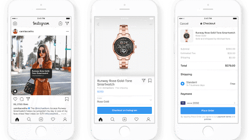 Checkout with Instagram allows users to complete purchases without leaving the app. A streamlined proces